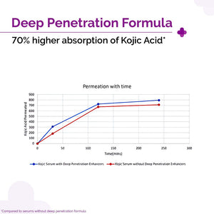 It combines 2% Kojic Acid, 1% Alpha Arbutin & Niacinamide with Deep Penetration Formula for fast absorption, visible results, and minimal side effects.