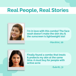 Go acne-free & say yes to clear skin in 2 easy steps! Meet our Clear Skin & Sun Protection Combo with 1% Hyaluronic Sunscreen Aqua Gel & 1% Salicylic Acid Gel Face Wash that treats acne-prone skin & protects it from sun damage. Make way for 1% Salicylic Acid Gel Face Wash with Witch Hazel & Willow Bark that deeply penetrates pores to eliminate acne-causing bacteria and impurities. To protect your skin against the harsh effects of UV rays and sun spots, follow it up with 1% Hyaluronic Sunscreen Aqua Gel which comes with SPF 50 & PA++++ sun protection. It’s super lightweight, fragrance-free & sinks into the skin without leaving any greasiness or white cast. This effective combo helps fight sun damage while preventing acne breakouts, giving you crystal-clear skin.