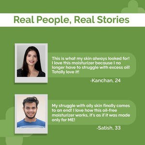 A moisturizer that doesn’t leave your skin all greasy? We heard you! Our Oil-Free Daily Face Moisturizer with skin-replenishing properties of Hyaluronic Acid & Ceramide provides prolonged moisturization & hydration to your skin. It strengthens the skin barrier & prevents moisture loss at the cellular level, giving a perfectly quenched & nourished look. The best part? This moisturizer helps in reducing excess oil from the skin while neutralizing the greasy shine and it’s fragrance-free too!
